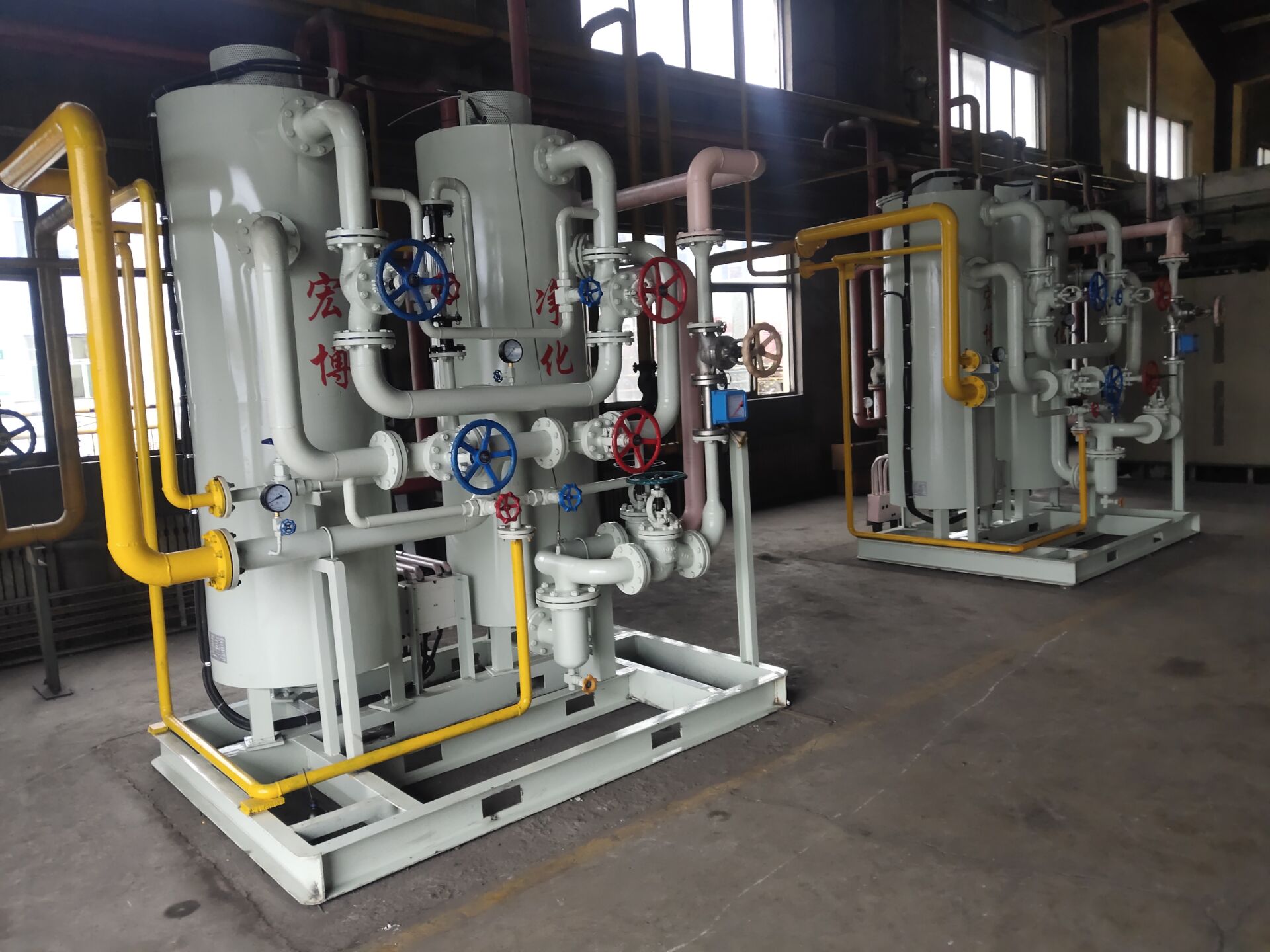 如需純度更高的氣體,氨分解出來的氣體再進(jìn)入純化裝置除水、除氧,純化裝置中兩個(gè)干燥器交換使用,連續(xù)供氣,最后經(jīng)過濾器,流量顯示送到客戶使用點(diǎn)。